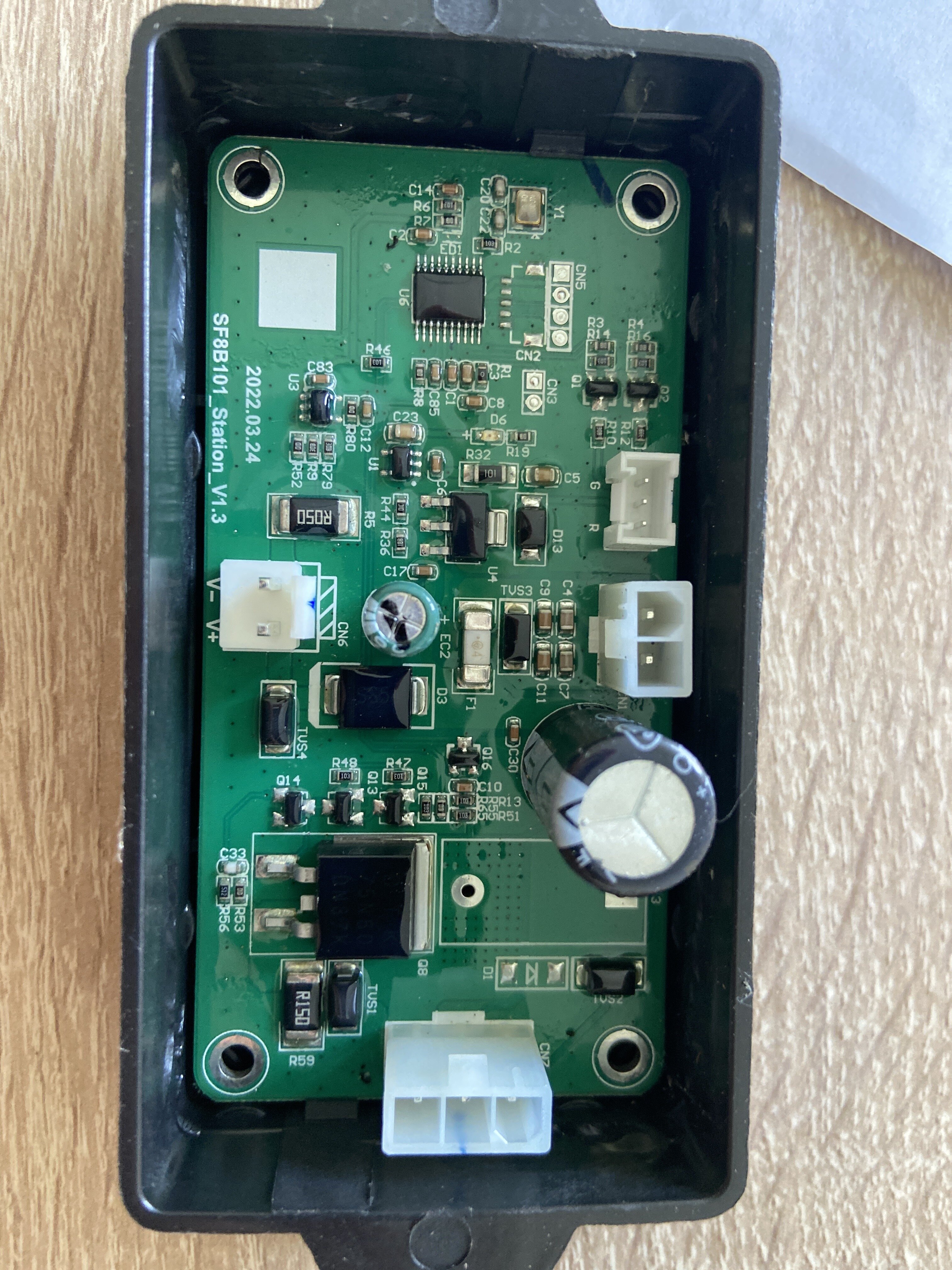 J’ai ouvert la station : la carte semble en bon état visuellement, le fusible est OK et les tensions sont correctes.